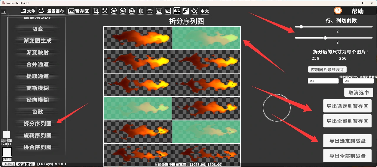 当你需要从某个序列图中取出其中一帧时可以进入拆分序列图功能