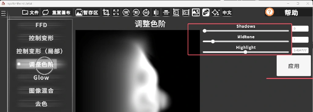 反相:对于特效来说,通常处理黑白图有用,例如翻转溶解图的黑白信息。
